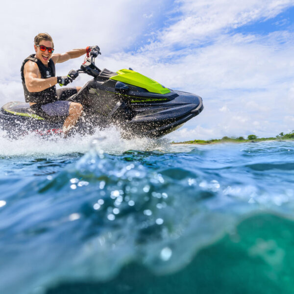 Es un cómodo Jet Ski para viajes largos a una alta velocidad de crucero y con diferentes innovaciones que lo hacen extremadamente práctico, incluido el asiento para 2 ocupantes.
