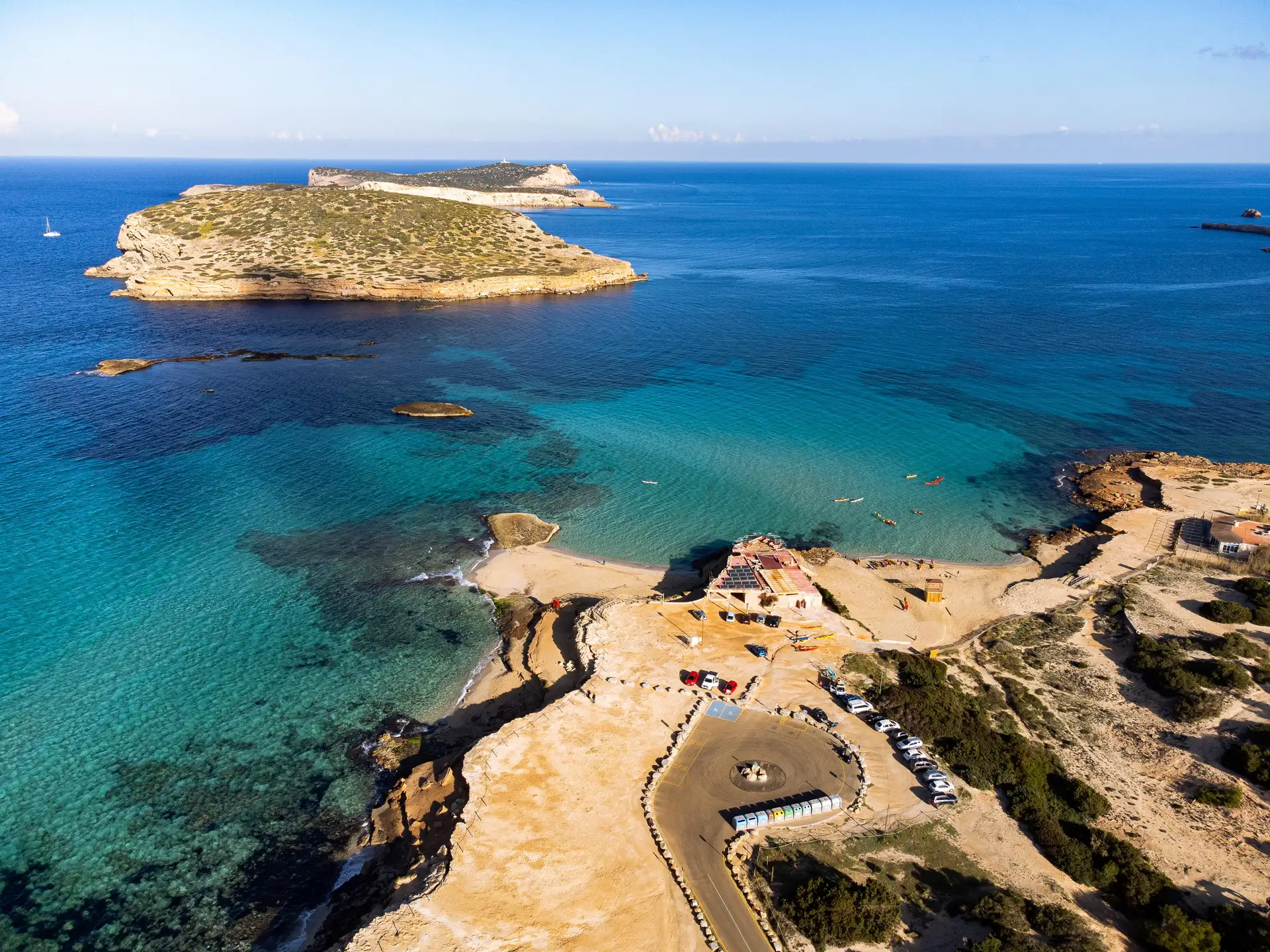 Avec trois extensions de superficie, l’ensemble des plages offre des vues incroyables sur la côte d’Ibiza.
